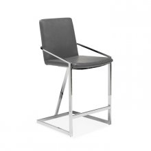 Spruce up your dining space with the upscale Jasmine barstool! Merging functionality with clean contemporary lines and sleek angles, this counter-height seat is all about understated glamour. The high-shine finish of the chrome frame is perfectly complemented by the padded seat, upholstered in your choice of matte white, grey, or black faux leather with a subtle pebbled texture for a beautiful finishing touch.