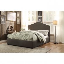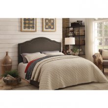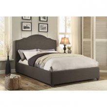 The Zaira Collection offers a modern traditional design for your bedroom. The beautiful nail head accenting of the Full headboard elegantly contrasts its dark gray fabric that covers the entire bed.