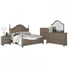 Transitional styling is paired with classic appointments and modern technology to create the Lavonia Collection. The stately traditional Eastern King poster bed creates instant appeal when taking in the design of the collection. The framing of the headboard carries over to the design of the footboard, with each corner post topped with a turned tall finial. A gray wire-brushed finish over oak veneers furthers the classic look of this bedroom collection.