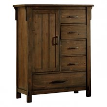 The traditional shape and accenting of Craftsman style are captured in the design of the Terrace Collection. The antique white finish of the dresser that accentuates the natural characteristics of the solid poplar wood also lends to the classic design, with antiqued bronze finished hardware adorning each drawer front.