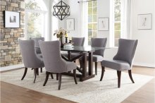 Blending transitional elements with traditional lines and modern flair creates the unique look of the Salema Collection. The dark brown finish of the wood base is visible through the beveled glass tabletop. The contoured back side chairs, offered in 4 distinct colors-Red, Blue, Chocolate and Gray, provide visual contract.