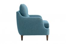 Transitionally styled for placement in a number of home settings, the Cagle Collection is offered in blue fabric with espresso finished legs. The gentle forward slope of the curved arm paired with the ample seat back create a comfortable platform, while the reversible seat cushion provides functional convenience.