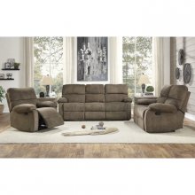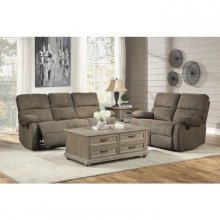 Transitionally styled for your casual living room, the Oswald Collection’s plush seating and unfettered design create the perfect platform for your relaxation. The pillow-top arms and ample seating of the sofa are covered in light brown microfiber further enhancing your peaceful downtime. Manual motion mechanisms operate with the pull of a side-mounted tab, that once engaged, take you from seated to reclined in an easy motion.