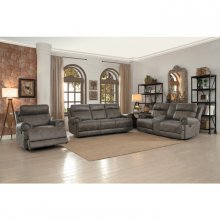 Styled for the transitional home, the Aggiano Collection is a comfortable and functional addition to your living room. The seating group is offered in a performance fabric that is water and liquid resistant, making it a neutral and functional decorative choice for a number of home environments. Manual motion mechanisms, once engaged, operate to take you from seated to reclined in an easy motion. The sofa features dual reclining ends. Providing additional support is the power operated headrest that allows you to further customize your comfort experience.