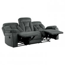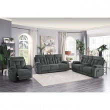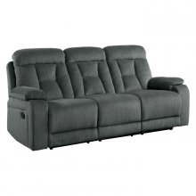Rosnay Collection is a comfortable and functional addition to your living room. Recliners bookend the symmetrical arrangement. Manual motion mechanisms, when engaged with the pull of a side mounted tab, ease you from seated to reclined. Gray fabric covers this casual sofa.