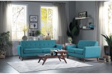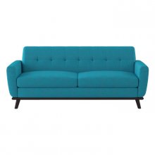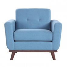 Mid-Century design inspires the sophisticated look of the Rittman Collection which will be at home in your living room. Gray fabric covering perfectly complemented by the wood base rail and feet that support the love seat. Stitch tufting lends further definition to the classic profile.