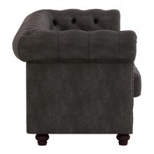 With a design that is rooted in traditional style, the classic look of the Wallstone Collection presents a timeless addition to your living room setting. This Chesterfield style chair is offered in brown polished microfiber and features button tufting and a heavily rolled arm that transitions to encompass the entire back. The turned bun foot is finished in a traditional cherry completing the classic look of the chair.