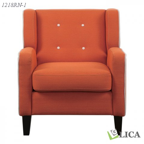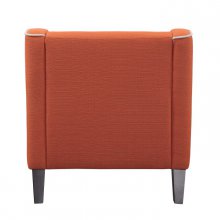 The retro lines of the Roweena Collection serve as a reminder that timeless design never goes out of style. White contrast welting lends definition to the boxy shape of this elegant seating offering. The chair is covered in an orange fabric, bringing a distinct look to your living room. White fabric-covered buttons punctuate the chair back further lending to the classic look. Matching love seat and sofa are also available along with 3 additional fabric options – dark grey, beige and teal.