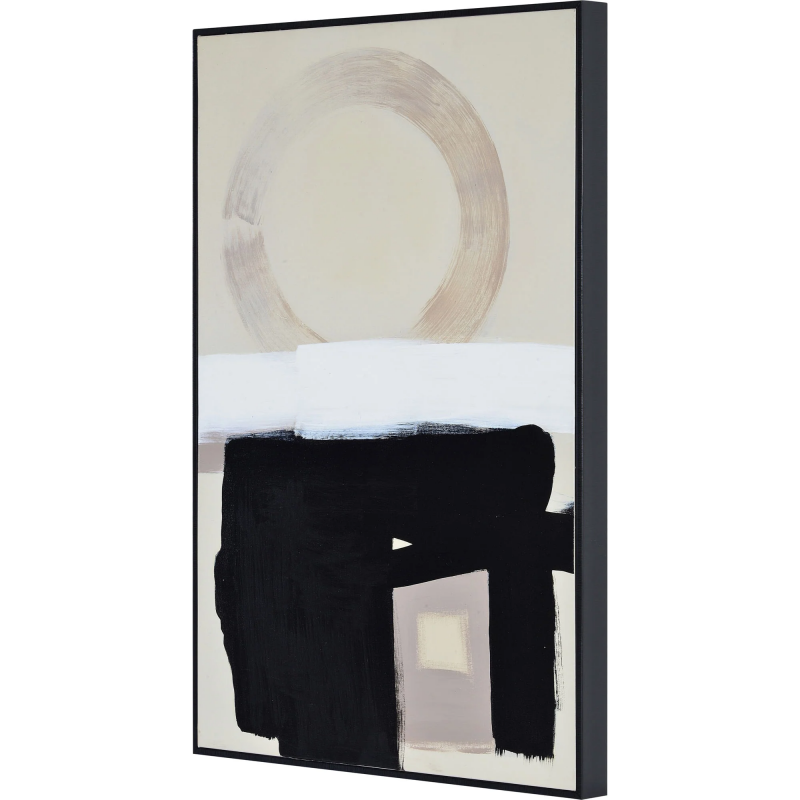 Simple in concept and striking in execution, this set of cotton canvases completes the aesthetic of the modern interior. Each piece tells its own story through the particular arrangement of shapes and strokes of black, beige, and white. Hanging vertically or horizontally within the living room or bedroom space, the pieces uplift the stylish influence of the room. Product Details: