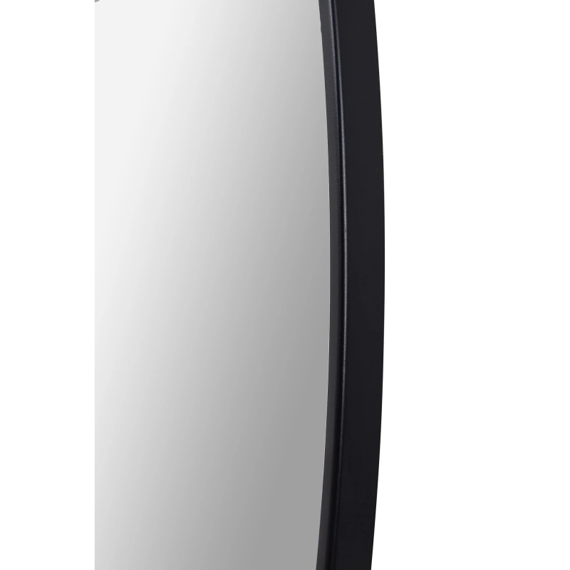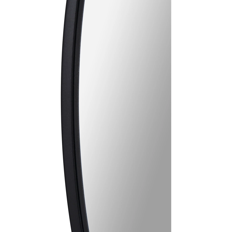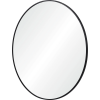 This mirror serves as an inviting blank canvas for reflection. This circular mirror makes a grand impression in the living space or powder room while still providing function. The black powder-coated metal frame feels simple yet sleek. Product Details: