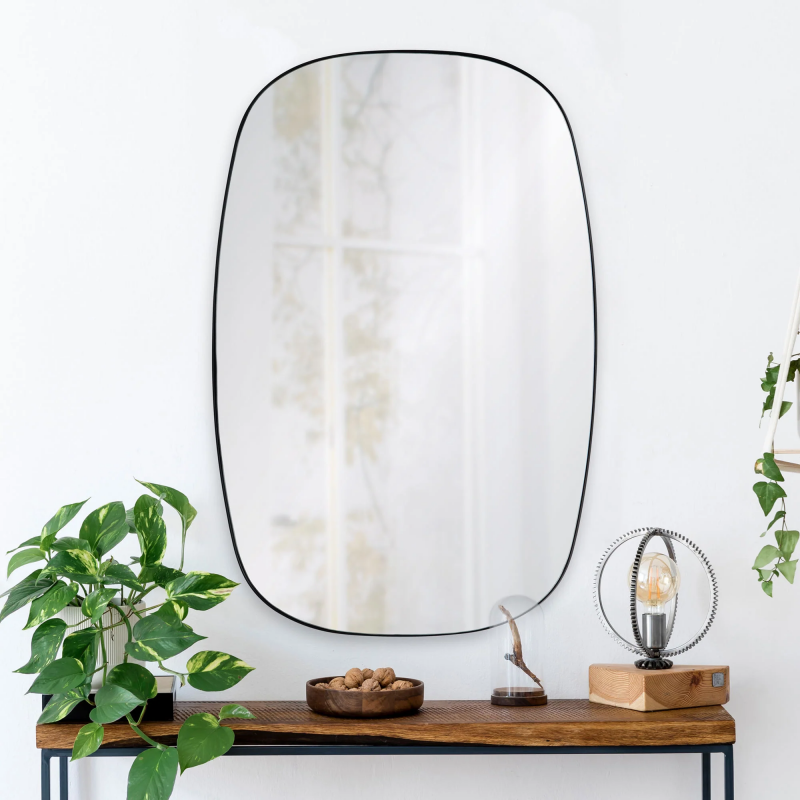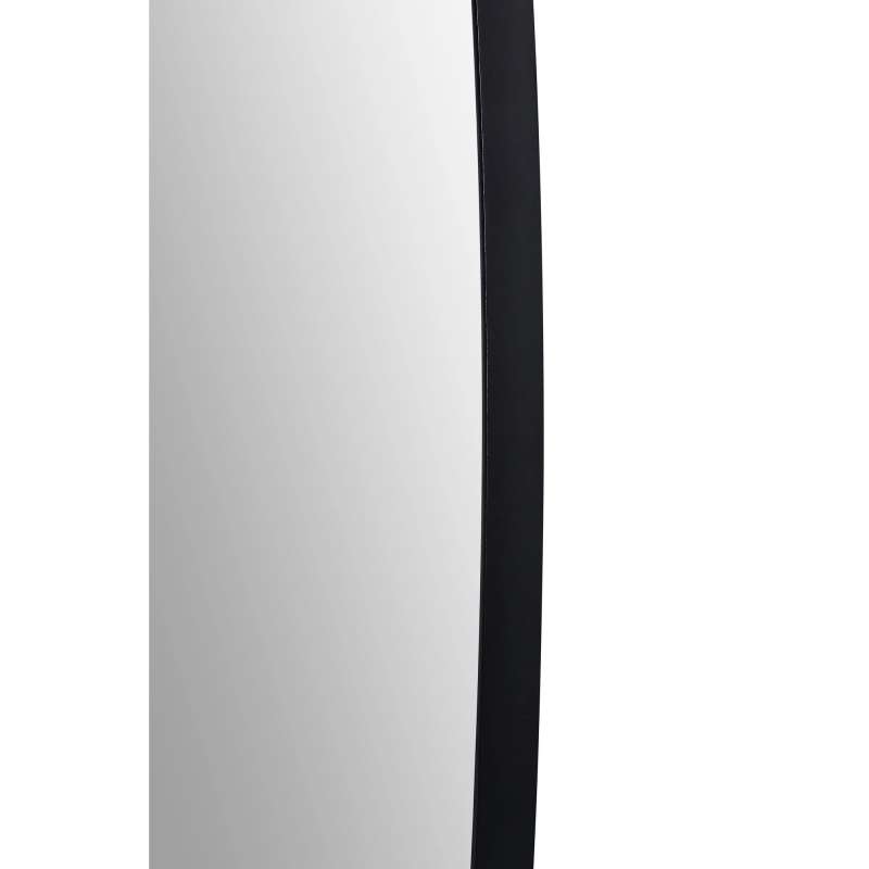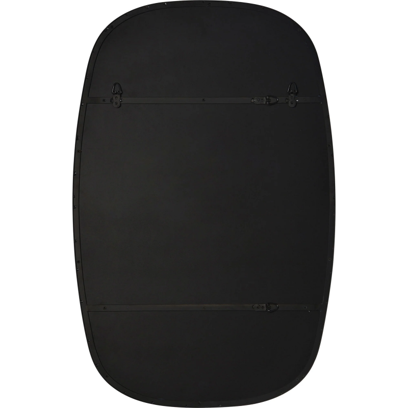 This straight-forward mirror design aims to accentuate its surroundings. Hanging in the entryway or bathroom, its soft rounded edges exude warmth, as the matte black painted iron frame brings a solidity. The design allows for endless versatility within the home. Product Details: