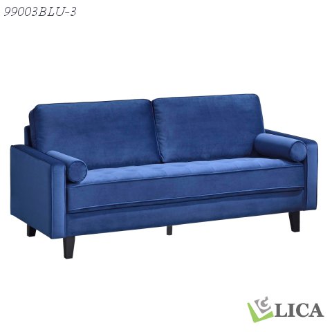 - Rich blue velvet upholstery