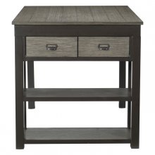 Inspired by industrial environments, the Elias Collection presents a functional modern aesthetic to your casual dining space. Acacia veneer features a gray finish that is perfectly contrasted by the gunmetal black finished wood framing that provides support. The table features a bookcase side support which features open display as well as drawer storage allowing for easy access to your table top items. Seating comes in the form of an available counter height bench and barstools – each with gray fabric-covered padded seats.