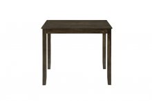Scaled for your casual dining nook, the transitionally styled Faust Collection will provide the perfect complement to your home’s decor. Vertical slat-back wood-framed chairs feature dark brown faux leather seating that pair with the coordinating table. The five-piece dining collection is offered in a charcoal brown finish over birch veneer.