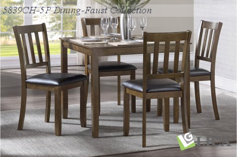 5839CH-5P | 0 | 5-Piece Pack Dinette Set | 10.85 | 98.5000 | Table: 36 x 36 x 30.5H, Chair: 17 x 21 x 36.5H |