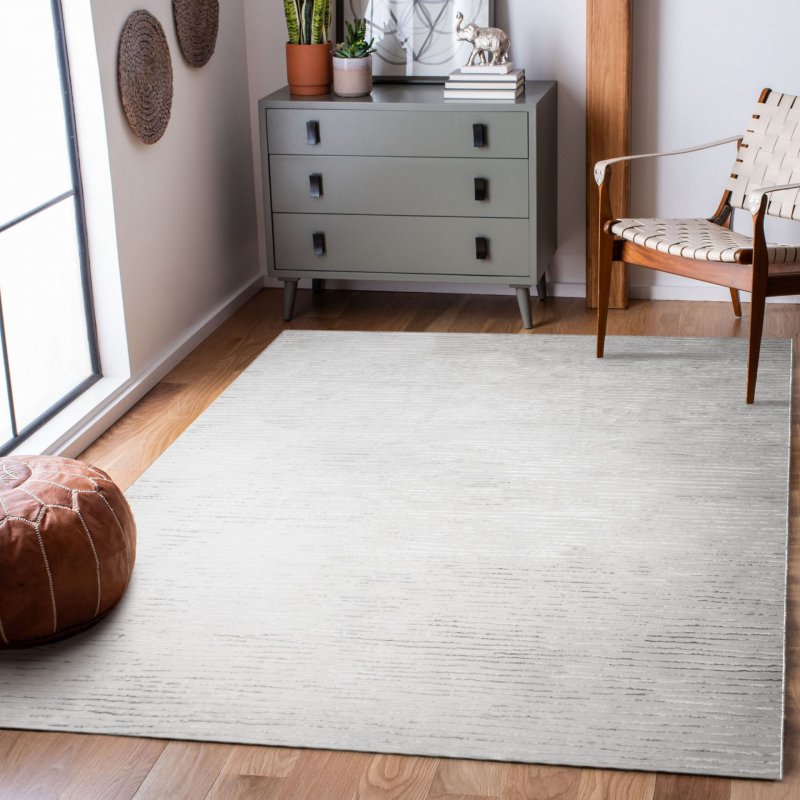 Style: RCAM-10188 | Dimensions : 16\" x 16 This understated rug design is made to complement its surroundings. Available in a variety of dimensions, it elevates extravagant furniture pieces and decor items within its midst, allowing them to become focal points. The subtle striped patterns and soft off-white hue promote an effortless comforting energy that one seeks in the home.