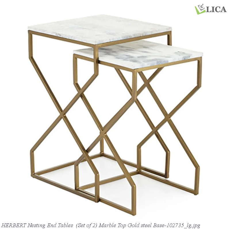 ItemName:HERBERT Nesting End Tables (Set of 2) Marble Top Gold steel Base