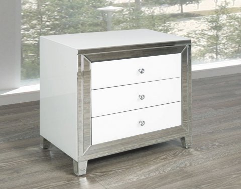 ItemName:White Mirror Glass Side Table 3 Drawer GY-WHT002