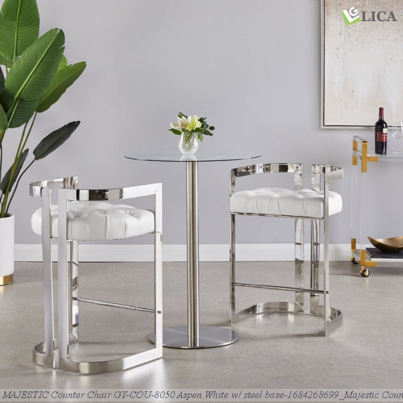 ItemName:MAJESTIC Counter Chair GY-COU-8050 Aspen White w/ steel base