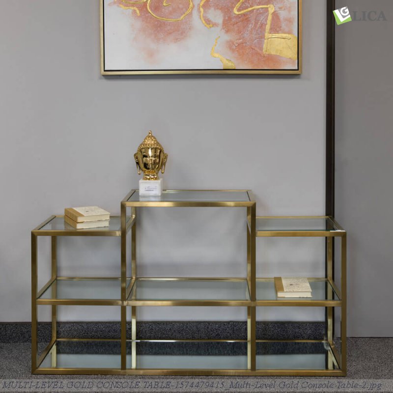 ItemName:MULTI-LEVEL GOLD CONSOLE TABLE