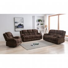 With an invitingly rounded profile, the Presley reclining collection is the sofa equivalent to a warm hug. Swathed in appealingly soft brown chenille fabric with generously stuffed cushions and outrageously plump pillow armrests, the Presley console loveseat beckons you to a state of total relaxation. Double tab-pull latches allow you to stretch out and recline while stitching details provide some shape to this cozy loveseat. The central console features lift-top storage and cupholders as an additional element to keep you comfortable. With dense foam padding over coil seat construction, you are guaranteed seating comfort and shape retention over time, ensuring that sinking into the Presley collection will be a pleasure time and time again. Also available in grey chenille; also available as a modular sectional.