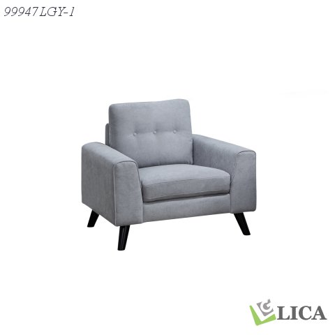 With inspiration taken from Mid-Century Modern styling, the Evelyn sofa collection is a refined addition to any living room. Clean lines and a tailored appearance with piped seams and button-tufted back cushions gives this chair an alluring freshness with a hint of retro detailing. Soft chenille upholstery in a neutral light grey hue ensures the Evelyn is right at home in any décor setting you can imagine, while exposed angled wooden legs in a black finish completes this contemporary look. Don't forget to coordinate with the matching ottoman - its extra large size not only has plenty of room for you to kick back and stretch out, but it also doubles as a surface to place a cocktail tray for company. Also available in grey chenille. Also available as a sofa sectional with chaise.