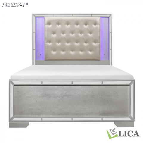 Elegant touches abound with the design of the Aveline Collection. Alligator embossed veneer covers the collection and is finished in silver, an elegant palette that beautifully pairs with your bedroom’s accessories and bedding. The headboard is centered with a silver faux leather panel that features button tufting and LED backlighting. The queen bed is further accented with mirror trim, reflecting your glamorous style.