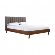 Set the stage for your contemporary bedroom with the Sasha Bedroom Collection. Influenced by the sleek look and functional forms of Mid-Century Modern design, this stylish platform bed has a low profile and stands atop angled legs for an elegant tapered look. A channel-tufted headboard is upholstered in soft grey fabric, providing a fresh mixed media contrast to the distinctive natural wood grain finish of the rails, footboard, and legs. The juxtaposition of the Sasha's two-tone mixed media aesthetic gives you endless possibilities for your bedroom décor, so get started - your perfect bedroom awaits!