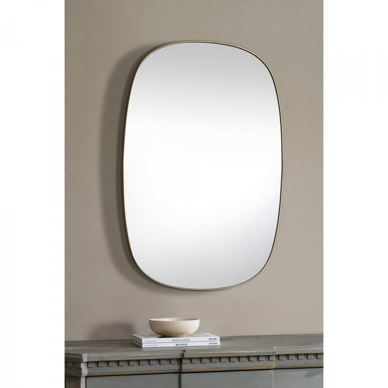 Style: MT2523 | Dimensions : 24\"W X 36\"H X 0.75\"D   This mirror design saves the spotlight for its surroundings, by showcasing a simple structure with great capacity for reflection. Its brushed brass plated iron frame adds flair to the form, while the oval build brings softness. With a 36- by 24-inch build, it allows for entirely new aesthetic opportunities when set horizontally or vertically.
