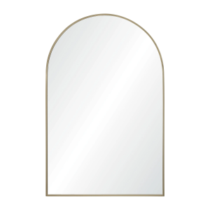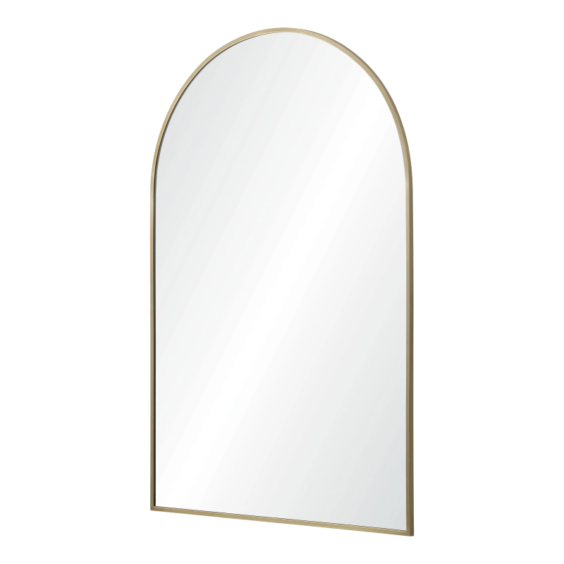 A curving structure adds a formality to the form of this minimal mirror design. With a 24-inch width and 36-inch height, it allows for both hanging and resting above furnishing arrangements. The gleaming satin brass plated iron frame provides a dazzling detail and creates compatibility with contemporary, classic and mid-century modern interiors. Product Details: