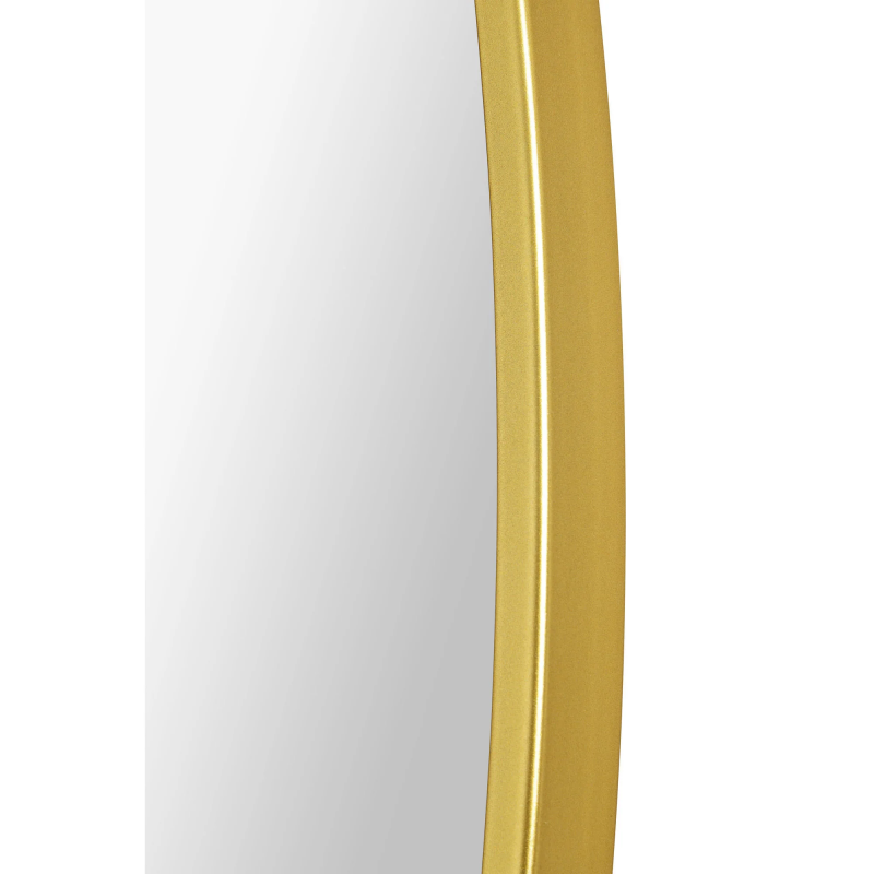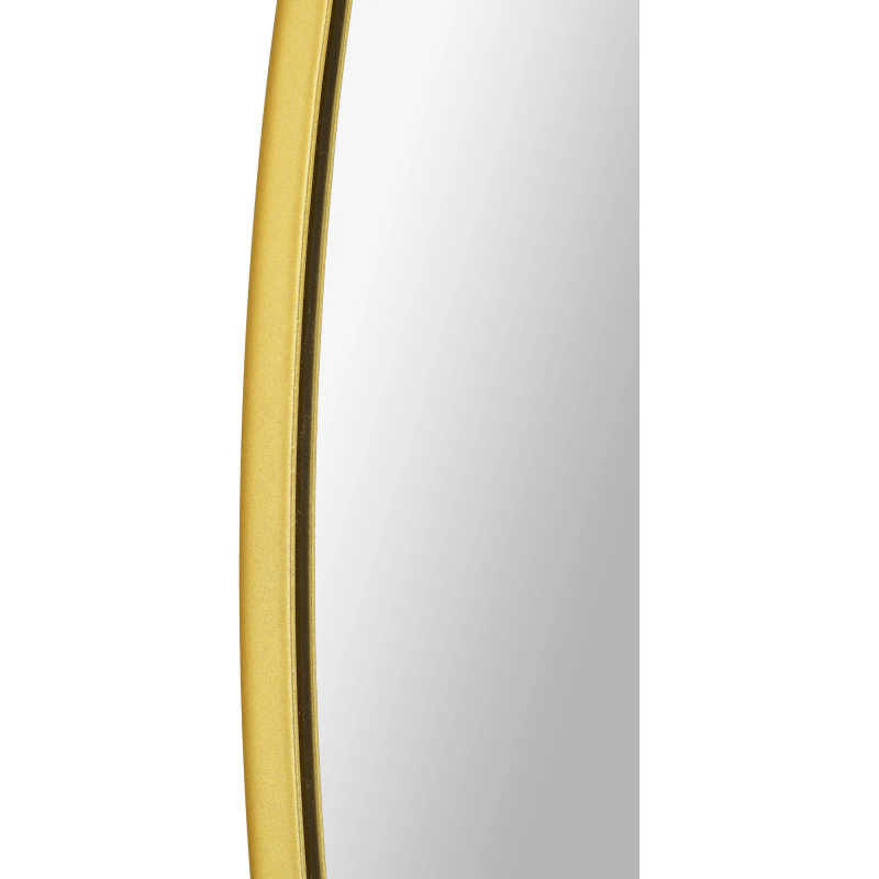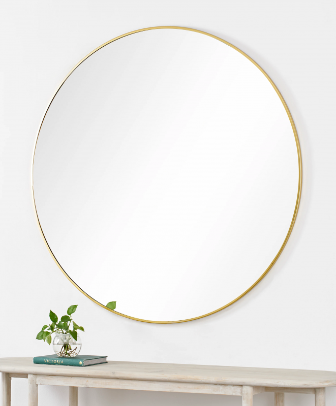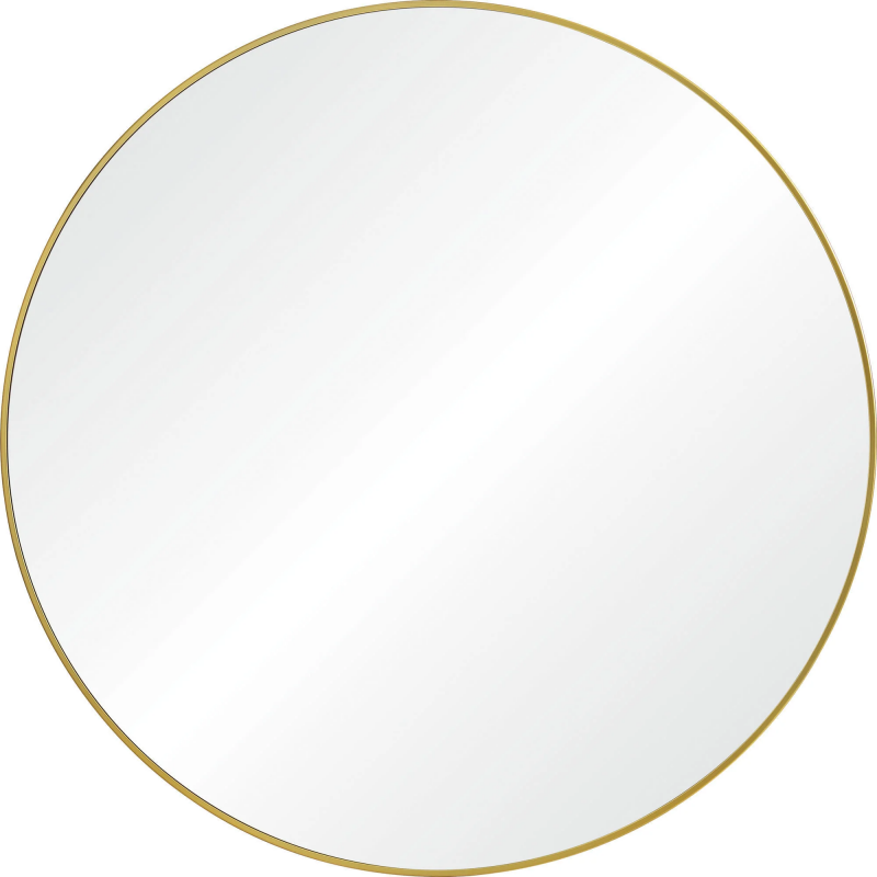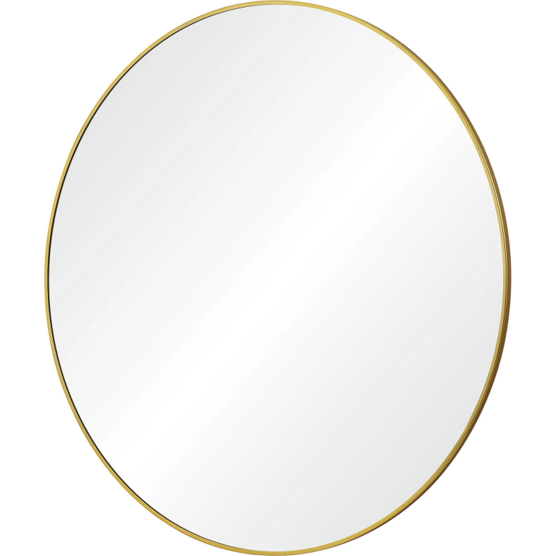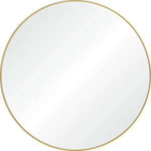 Set atop a vanity or entryway table, this round mirror adds fresh angles and dimensions to the home. The thin gold iron frame bringing a beaming tone to the space it rests within. With a 48-inch circumference, its size only enhances its opulent quality. Product Details: