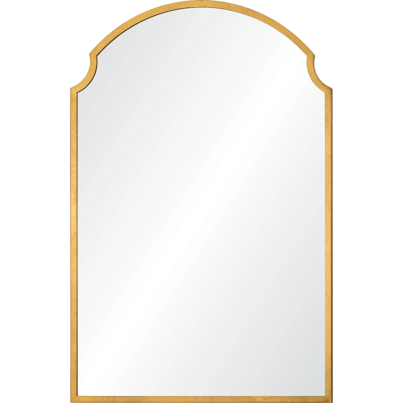 Regal radiance takes focus in this mirror design. The marriage of its romantic structure and the gold leaf finished iron creates a compelling combination fit for the classic or mid-century modern interior. At 36 inches in height and 24 in width, it fills a space without becoming overwhelming. Product Details: