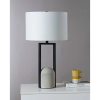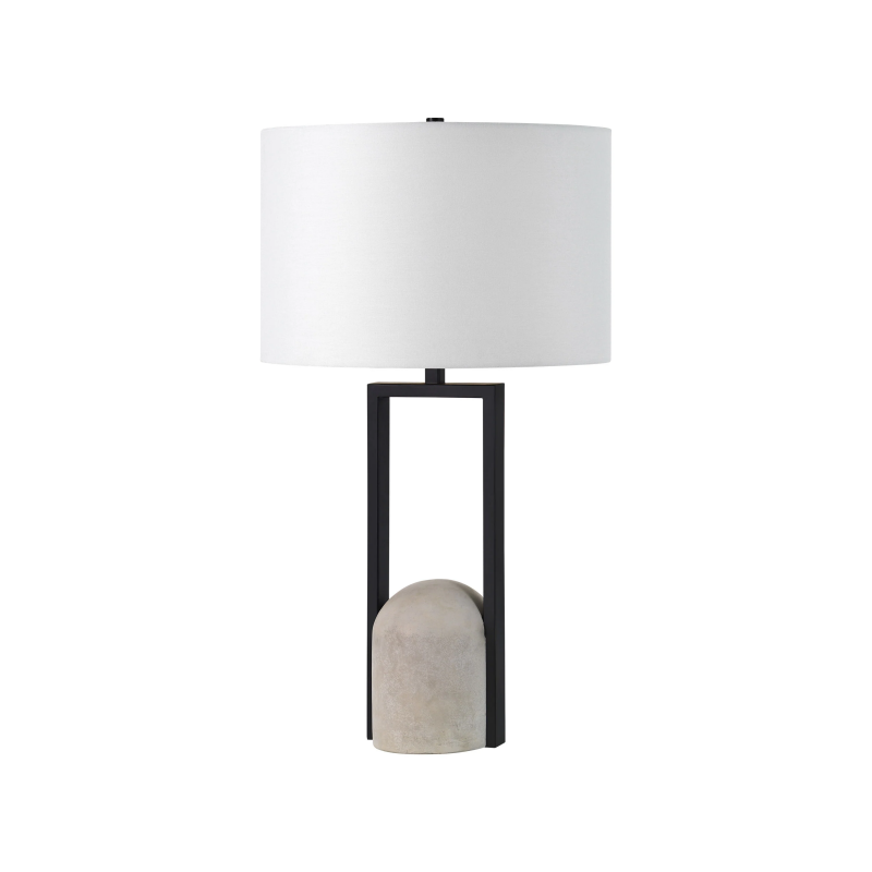 This lamp design brings a structural quality to the minimalist interior space. The addition of concrete to its iron and cotton structure feels modern and organic. Set a pair of them on bedside tables or living room console for a symmetrical look. Product Details: