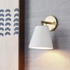 This piece may not be grand in size, but it is grand in impact. Featuring an antique brass finish on its iron structure and a bright off-white shade, its palette brings an air of glamor to the home. Arranged within a kitchen, or living room space, the sconce is just as stylish when set on its own as it is when several are arranged around the room. Product Details: