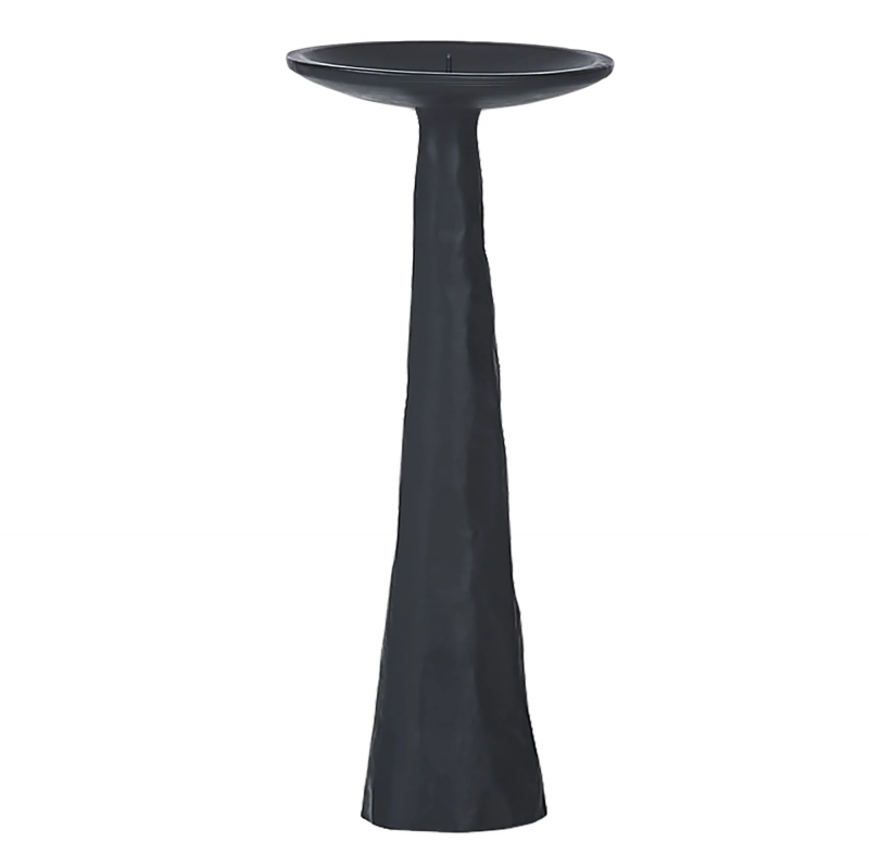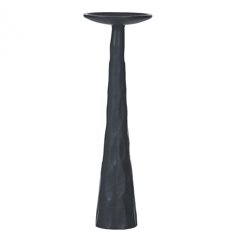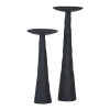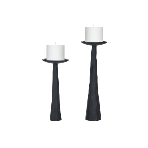 Gothic glamor envelops the stylish interior living space when these candle holders enter the space. With one pillar standing at 13 inches and the other 10, they complement one another and create greater dramatic impact through their differences. Composed of cast aluminum painted matte black, they are even more exquisite with glowing candles atop.