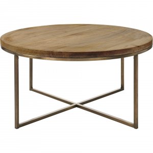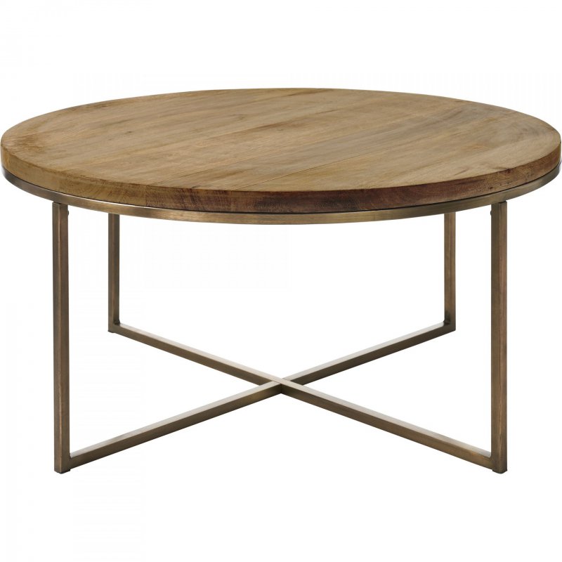 Style: TA445 | Dimensions : Dia-30\" X 15\"H Bringing utility and style to the mid-century modern living space, this coffee table has the capacity to make a statement. Featuring a juxtaposition of mango wood and antique brass plated iron, it holds a warm quality and exudes quality craftsmanship. Dress it with an eclectic mix of books and décor elements or simply leave it bare - there are no wrong design decisions with this piece.
