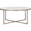 No embellishment is required to make this coffee table design gleam and glisten in the living room space. While the antique brass plated iron structure lends itself well to a mid-century modern interior, the white marble makes it equally suited for the contemporary home. Whether placed for purpose or polish, it elevates any space it enters. Product Details: