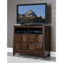 With an intricate design lending to the modern look of the Porter Collection, your bedroom will reflect your taste for sophisticated contemporary living. A warm walnut finish and the look of woven detailing highlight the natural wood grain of the veneer on the tv chest. Knob hardware blends effortlessly to create an unobtrusive accent to the case goods. Open media storage allows for quick and unobscured access to your entertainment consoles.