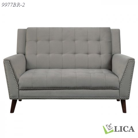 Retro lines are given new life in the modern-traditional styling of Broadview Collection. Flared arms are paired with tailored lines in this sophisticated love seat design. Nail head accenting and cherry-finished support legs provide decorative touch to the Fawn Velvet covering. The love seat is also available in Fog Velvet– each color providing a neutral palette for your decorative preference.