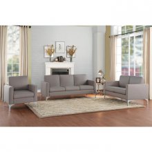The Soho Collection is a classic study in the elegance of modern design. The profile of the love seat features straight lines that are synonymous with contemporary styling. Brownish gray coverings for ultimate design versatility. The reversible back and seat cushions together with metal legs further lend to the modern design.