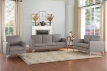 The Soho Collection is a classic study in the elegance of modern design. The profile of the love seat features straight lines that are synonymous with contemporary styling. Dark gray covering for ultimate design versatility. The reversible back and seat cushions together with metal legs further lend to the modern design.