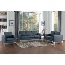 The Soho Collection is a classic study in the elegance of modern design. The profile of the chair features straight lines that are synonymous with contemporary styling. Dark gray covering for ultimate design versatility. The reversible back and seat cushions together with metal legs further lend to the modern design.