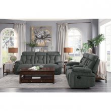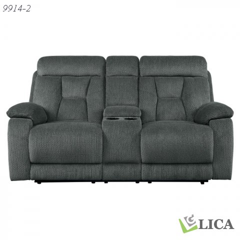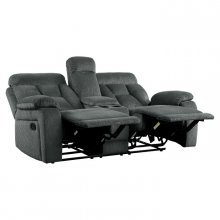 Rosnay Collection is a comfortable and functional addition to your living room. Recliners bookend the symmetrical arrangement with dual consoles providing cup holders and lift top storage. Manual motion mechanisms, when engaged with the pull of a side mounted tab, ease you from seated to reclined. Gray fabric covers this casual love seat.