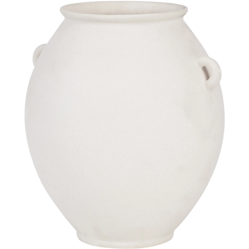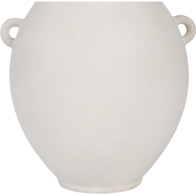 An ancestral aesthetic radiates from this vase whether it’s sitting empty or holding florals. Composed of ceramic stoneware with 9 by 10-inch dimensions, it offers several opportunities for setting. With an off-white matte glaze, this design has a glow while remaining calming in neutrals. Product Details: