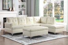 Soft Contemporary styling lends a cool, classic look to your modern living space in the Barrington Collection. Stitch tufting provides soft contrast to the cleanly designed lines of this accent ottoman, which provides the perfect platform for extra seating or just putting your feet up while you enjoy your downtime. The ottoman is covered in white faux leather upholstery.