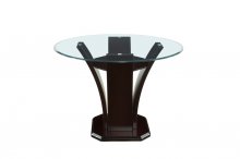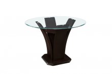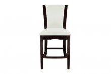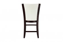 Daisy Collection combines superb visual appearance and fine quality that you need in your dining area. Three distinct elegant flared tulip bases support beveled glass tabletops on the round counter height table. Counter height chairs feature clean lines and sleek curves; available in both white faux leather and dark brown faux leather. The set is constructed of hardwood solids and veneers in a refreshing espresso finish.