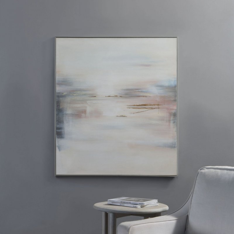 Style: OL2094 | Dimensions : 42\"W X 48\"H X 2\"D Tranquility exudes from this framed art painting and reaches every corner of the home or business it hangs within. Simple in design and soft in palette, this canvas art's blush tones offer a romantic air that is equally complimentary to contemporary and classic aesthetics. Styled in the bedroom, living room or entryway, it is well suited for strong wood furnishings and sleek, delicate decor alike.