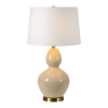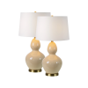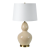 The unique thing about this table lamp set is its influence can change depending on your client's choice of styling. When set within the mid-century, modern interior, its curved lines and antique brushed brass details will take focus. However, when set within the classic, traditional interior, this table lamp brings a slightly retro glamour vibe that ties into the soft textures and neutral palette in its midst. Product Details: