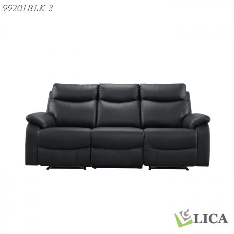 Build your way to your best possible living room with the Wembley reclining collection. Quintessentially modern, this modular reclining sofa allows a degree of customization when you mix armless seats with reclining arm chairs so that this sofa configuration can become a loveseat when your needs call for it. Designed in Portugal with classic contemporary styling and beautiful genuine top grain leather upholstery in a rich black tone, the allure of the Wembley is irresistible. Comfortable in the extreme with generously padded pillowy arm and headrests offering a wealth of support, sitting in this luxurious sofa is a treat whether you are in an upright position or using the side-mounted latch mechanism to recline. Also available in other colours. Also available as a power reclining set.