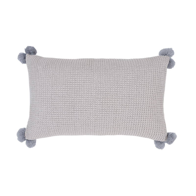 The feeling of coziness takes on physical form in this throw pillow design. At once modern and timeless, it can toe the line between contemporary and classic casual interior depending on the aesthetic arrangement. Composed of cotton with knitted pom-poms on each corner, and feather-down filling, its 25 by 15-inch build brings comfort to every moment in its midst. Product Details: